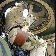 “However, those straps are as uncomfortable as they are unsafe,” says Greenwood. “Gunners say they cause severe pain in their lower backs and buttocks on long patrols and make their legs go to sleep. They also do nothing to prevent the two leading causes of injury and death to Humvee gunners in Iraq—ejection from the vehicle due to the violent impact of mines and roadside explosives, and rollovers.”